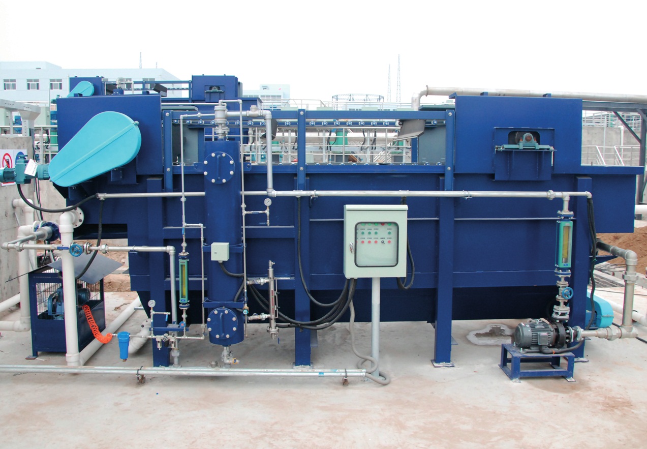 溶氣氣浮分離裝置有效運行于廣泛的工業(yè)及市政項目中,可以去除水中的懸浮物 、膠體物質(zhì)、油類等,也可作為最終的澄清器提供更高效的處理。在工業(yè)污水處理中,可以用于從工藝水中回收原材料:例如纖維材料,輕質(zhì)化學(xué)絮體,有機廢物,輕質(zhì)微小的固體,脂肪,油脂和油等材料,易于回收。